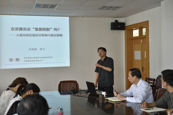 孙斌栋首先从“环京津冀贫困带”现象开始,通过一系列的计量方法,用大量数据辩证的讲述大城市发展对周边中、小城市发展存在“集聚阴影”还是“溢出效应”,引起大家深入思考:小城市临近大城市到底是“福”还是“祸”?雄安新区战略与环京津冀贫困带是什么关系?等相关科学问题。最后他提出了对雄安新区战略的地理学思考,认为要更好地落实京津冀协同发展战略,就必须解决大城市对小城市产生的虹吸效应,使“集聚阴影”变为经济增长的阳光地带。