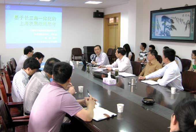 师生作了题为《基于长三角一体化背景下的上海市发展战略思考》的学术报告。校科研处负责同志、学院领导班子、相关专业教师和研究生参加了报告会,报告会由院长焦华富教授主持。