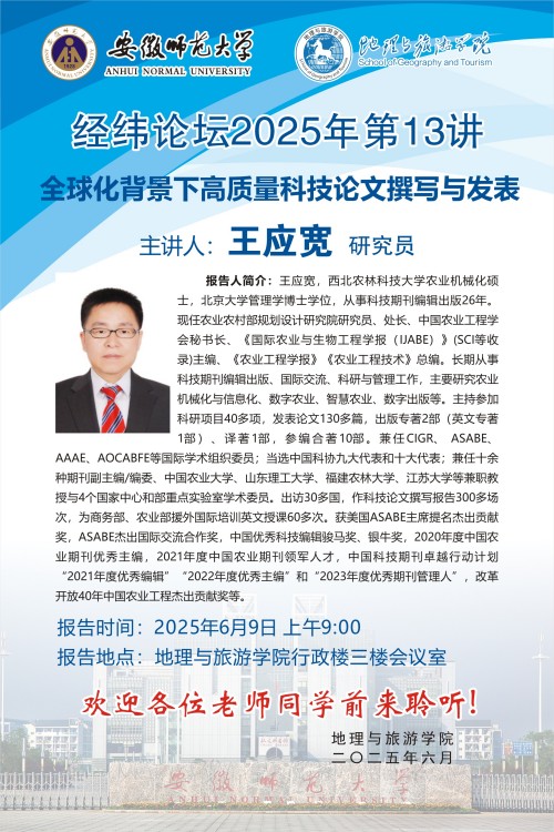 【学术预告】经纬论坛第79讲: 全球化背景下高质量科技论文撰写与发表