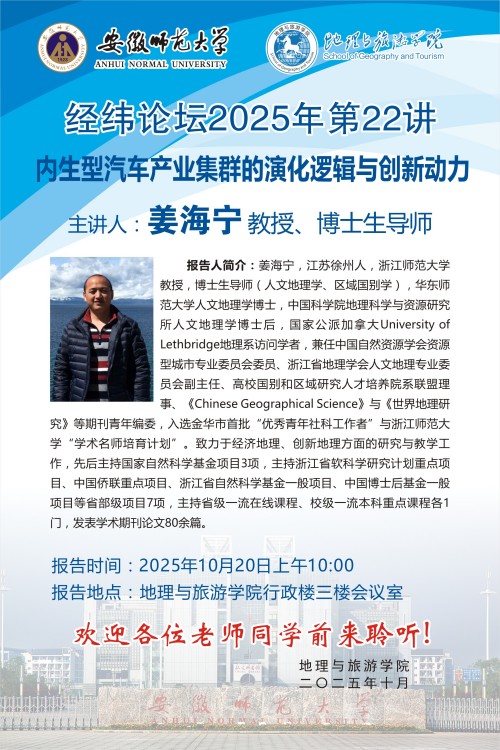 【学术预告】经纬论坛第88讲: 内生型汽车产业集群的演化逻辑与创新动力