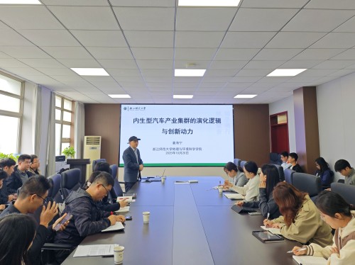 讲学,并做了题为《内生型汽车产业集群的演化逻辑与创新动力》的学术报告。报告在学院行政楼三楼会议室举行,学院相关专业的教师和研究生参加了报告会。
