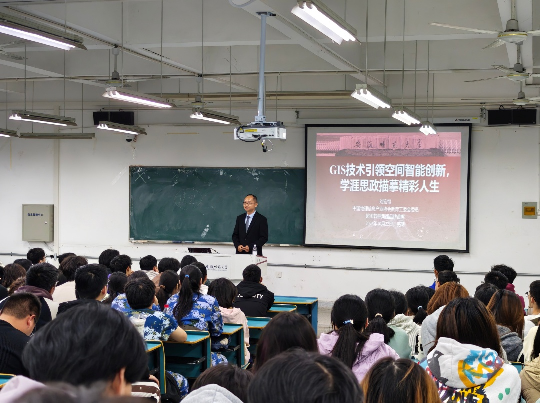 地理信息科学专业在行知楼2070101教室举办专题学术报告会。超图软件品牌首席刘宏恺先生应邀作了主题为“GIS技术引领空间智能创新,学涯思政描摹精彩人生”的报告。报告会由色情动漫