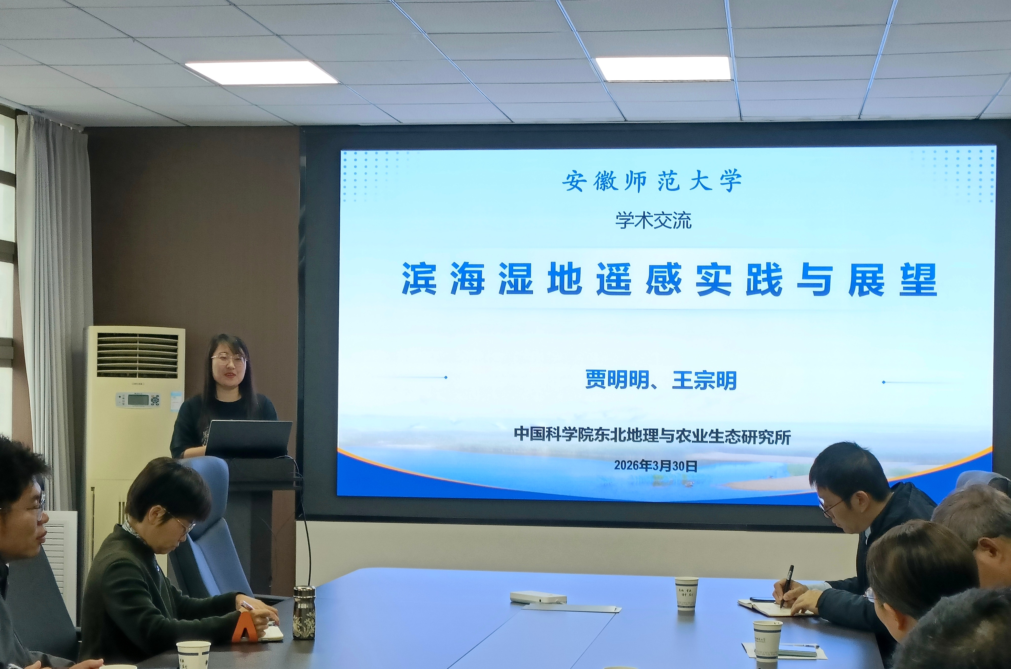2026年3月30日上午,中国科学院东北地理与农业生态研究所贾明明研究员应邀到色情动漫 讲学,并做了题为《滨海湿地遥感实践与展望》的主题报告。报告会在学院行政楼三楼会议室举行,学院相关专业的教师和研究生聆听了此次报告。