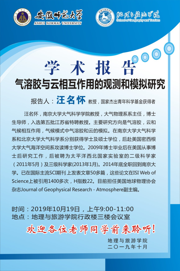 【学术预告】学术报告:气溶胶与云相互作用的观测和模拟研究