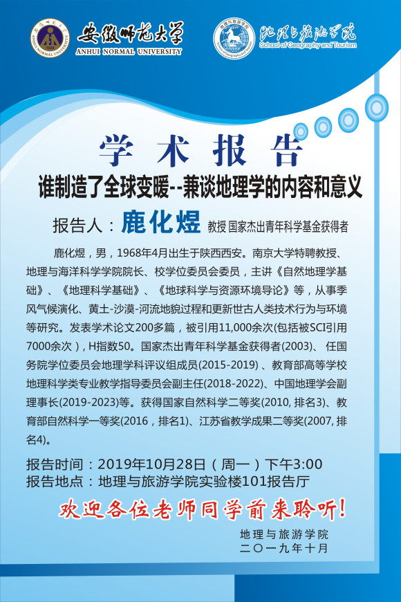 【学术预告】鹿化煜:谁制造了全球变暖--兼谈地理学的内容和意义