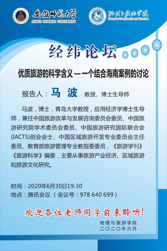 【学术预告】马波:优质旅游的科学含义—一个结合海南案例的讨论