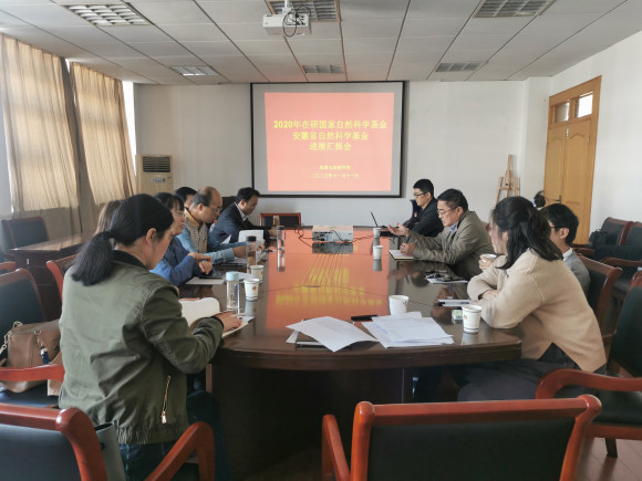 国家自然科学基金和省自然科学基金项目进展汇报会在院行政楼四楼会议室召开。学院方凤满教授、杨兴柱教授、李俊峰教授作为专家出席会议,项目负责人和部分教师参加会议,会议由院长苏勤教授主持。