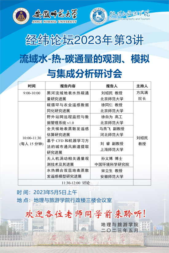 【学术预告·经纬论坛】流域水-热-碳通量的观测、模拟与集成分析研讨会