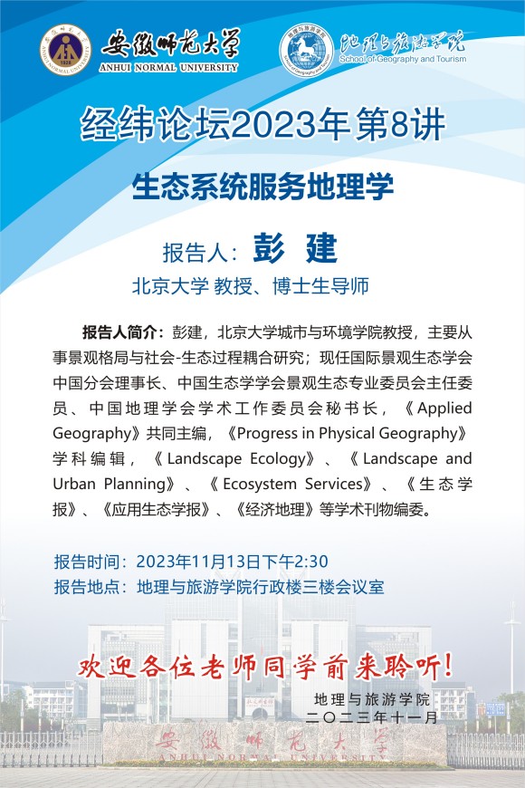 【学术预告·经纬论坛】彭建:生态系统服务地理学