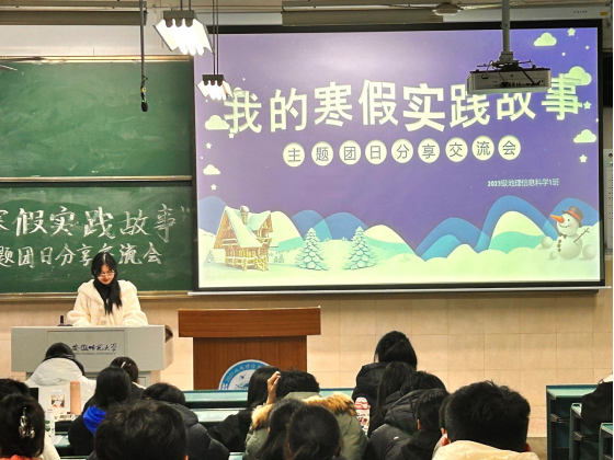 2024年3月4日晚七点2023级地理信息科学一班在行知楼4号楼302室举办了以“我的寒假实践故事”为主题的团日分享交流会。本活动由辅导员白雪老师和班级宣传委员高羽彤共同主持。