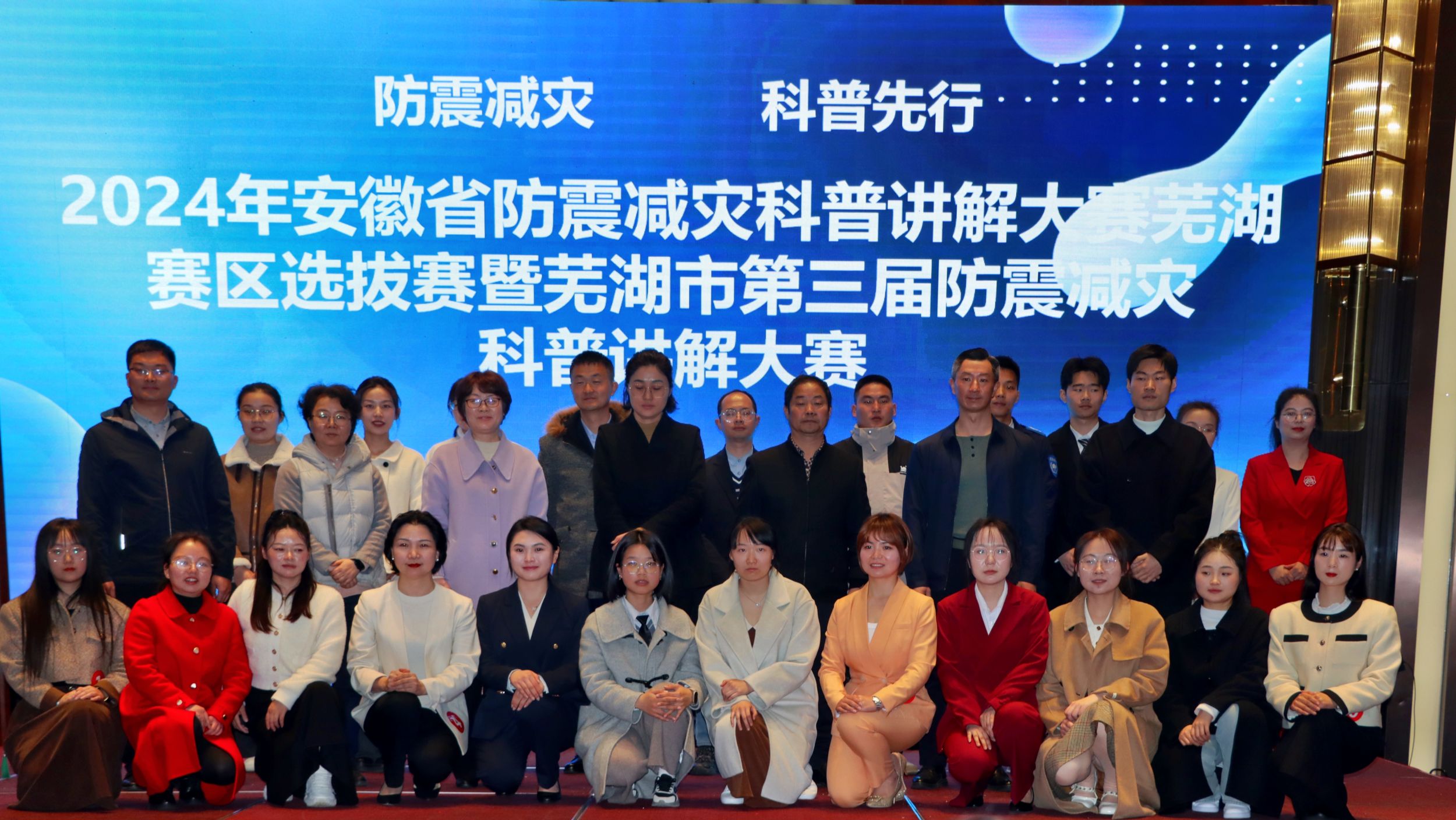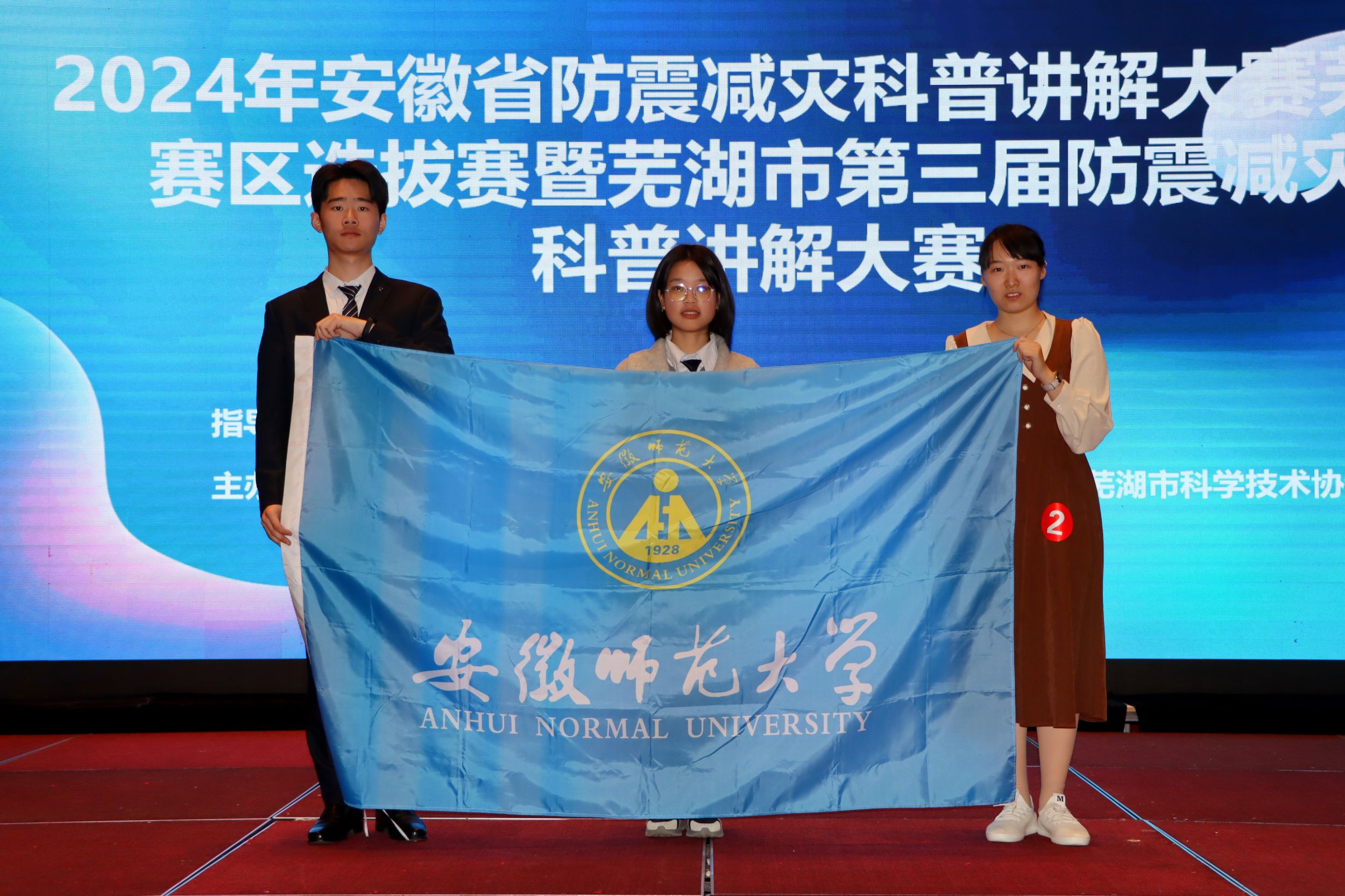 本科生杨懿帆、蔡子坤、谈灿芬于苏宁环球大酒店二楼,积极投身2024年安徽省防震减灾科普讲解大赛芜湖赛区选拔赛暨芜湖市第三届防震减灾科普讲解大赛。