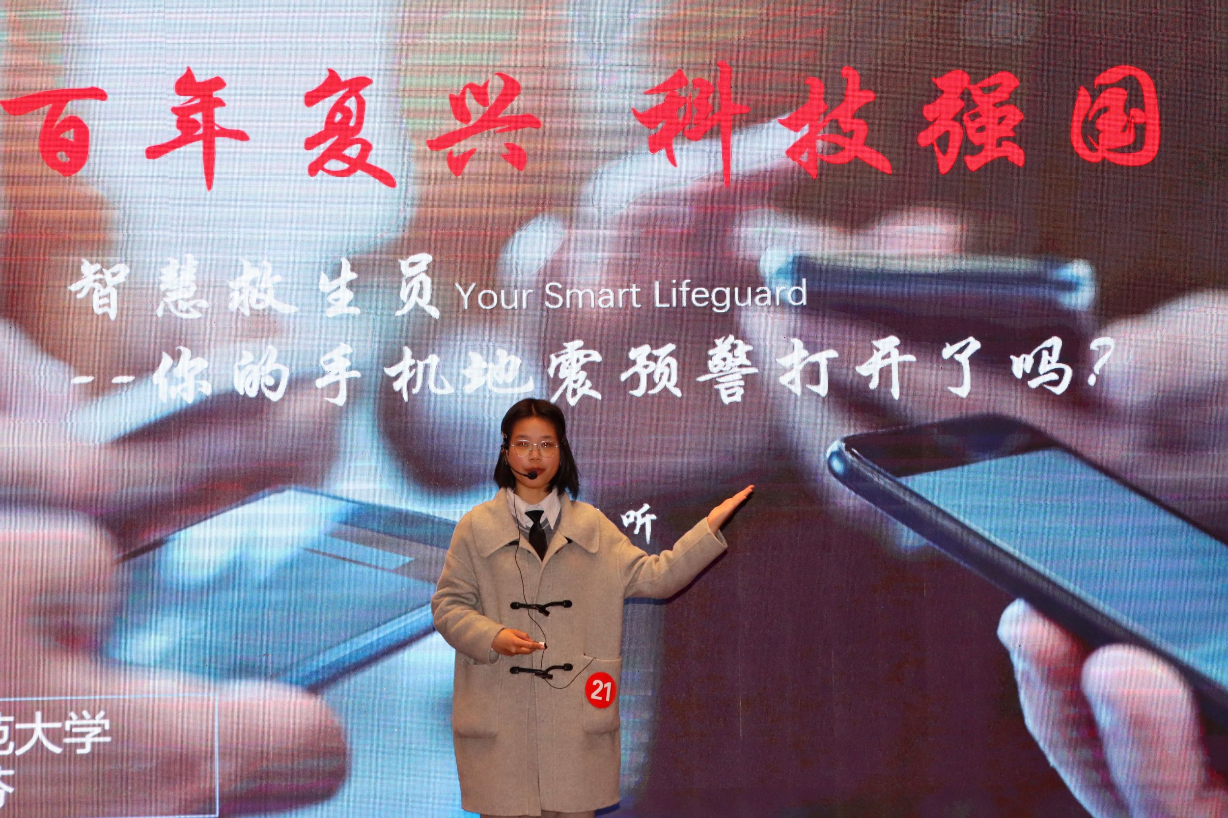 最后压轴登场的是21号选手谈灿芬,她以“智慧救生员——你的手机地震预警打开了吗?”为题,为观众带来了一场别开生面的科普讲解。她以2024年2月24日合肥地震为例,生动展示了当地居民手机上出现地震警报的情景,引起了在场观众的极大兴趣。她深入浅出地从智慧内容、科学原理以及打开方法三大方面,逐一揭开“智慧救生员”这一神秘角色的面纱。最后,谈灿芬以强烈的使命感号召在场的每一位观众,拿起手机,打开地震预警功能,为自己和家人增添一份安全保障。她的演讲不仅让人对地震预警有了更深刻的认识,也唤起了大家对于安全问题的重视。