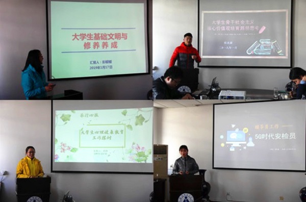 随后,各年级其他专兼职辅导员也分别围绕“大学生基础文明与修养养成”、“大学生骨干社会主义核心价值观培育路径思考”、“大学生心理健康教育”、“5G时代的网络安全教育”、“高校辅导员工作文件梳理”等专题展开了深入交流和学习。