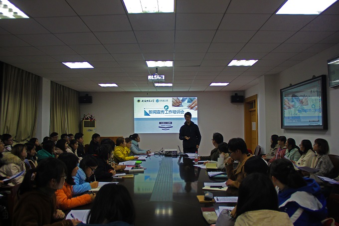 新闻宣传工作培训会在院行政楼三楼举行。院团委副书记吴辉、王阳,辅导员吴文涵参与了此次会议。院学生会、社团联合会、社团的宣传骨干,2017、2018级各专业宣传委员列席聆听。