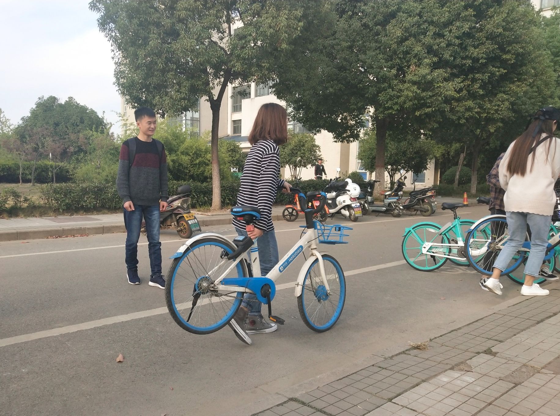 18级旅游管理专升本一班的同学们在师大校园内进行了一次以“整理校园乱停共享单车,保持师大校园美丽整洁”为主题的团日活动。活动由班委策划,在班长刘韵扬和组织委员张玉玲的组织下展开。