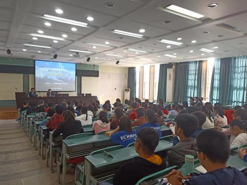 吴文涵 熊政安)2018年10月24日下午,上海师范大学旅游学院胡小猛教授应邀在地理与旅游学院实验楼101报告厅为2018级地理学专业新生作专业教育报告,本次报告的主题为《河西走廊—青藏高原一线自然地理野外教学实践》。地旅学院副院长曹卫东、地理学专业负责人及代表教师出席本次活动,2018级新生辅导员及地理学全体新生参与聆听。本次活动由曹卫东主持。
