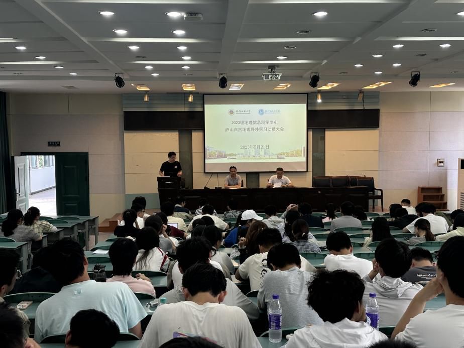 (本稿讯 赵毅衡、杨炯)2025年5月21日下午,2023 级地理信息科学专业全体同学齐聚学院实验楼 101会议室,参加庐山自然地理综合实习动员大会。学院党委副书记付勇,副院长杨兴柱,专业教师苗雨青、徐仪红、孙炼、姚有如、张宠宏等参加会议。会议由带队教师苗雨青主持。
