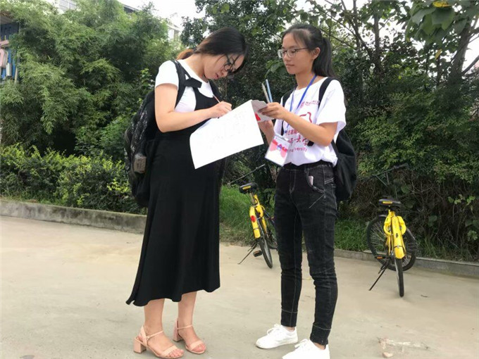 调研团队队长将13人分成三组,派往学府路的不同地点发放问卷。队员们手拿问卷和铅笔,带着灿烂的微笑礼貌地向路过的人们问好,介绍自己的团队并请求他们帮忙填写问卷。善良的人们使这个炎热的夏天变得格外的可爱,队员们感受到的不是满心的焦躁,而是骄阳似火中收获的质朴真心。