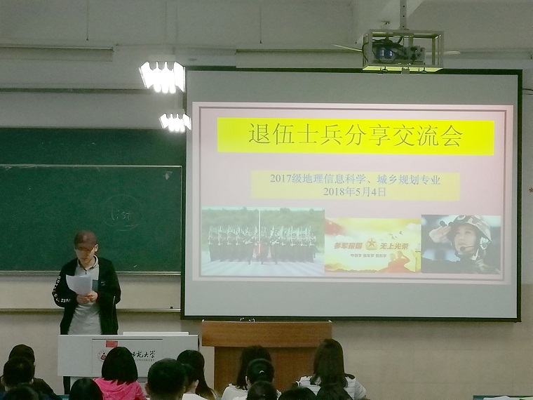 本网讯(尹琦蕾 彭媛媛)2018年五月四日,在五四青年节这个特殊的日子里,地理信息科学及城乡规划专业在行知楼2040302教室召开“大学生征兵入伍动员暨退伍士兵交流会”主题班会,会议由辅导员彭媛媛主持。