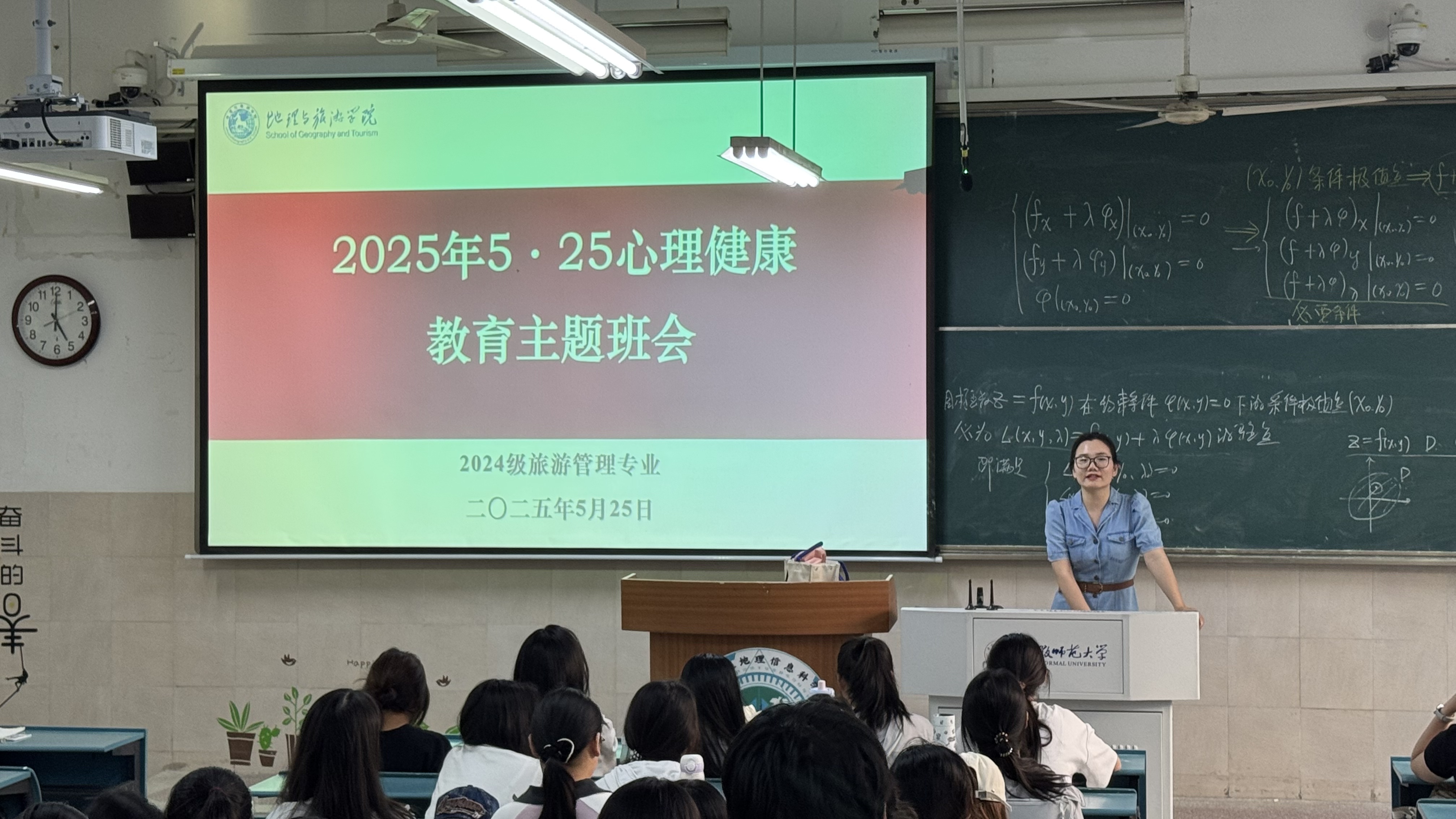 2025年5月25日下午,色情动漫 2024级旅游管理专业全体同学在行知楼2040103教室召开了“5·25心理健康教育”主题班会,本次班会由辅导员韦银艳老师主持。