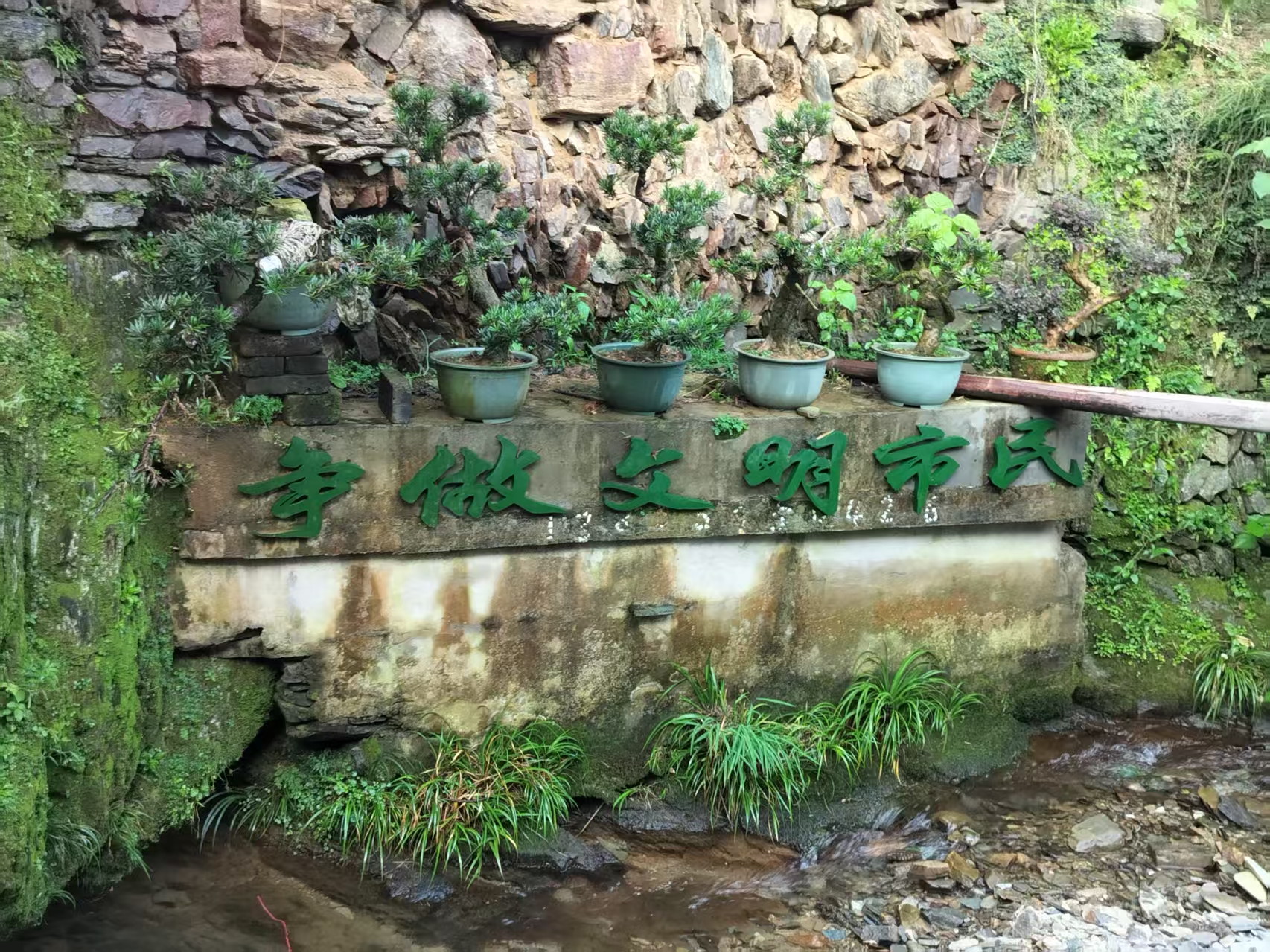 卖花渔村位于歙县城东南7公里,新安江南岸沟谷腹地,是一座具有千年历史的古村落,因地形似鱼且以花卉盆景闻名得名。村子四面环山,海拔200米左右,森林覆盖率达95%,温暖湿润的气候和肥沃疏松的土壤,为盆景植物生长及树桩培育提供了优越条件。