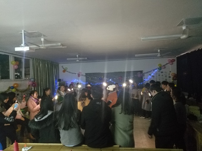 在班委的统筹合作安排下,11日晚6点准时开始了联欢会,在主持人致开幕词之后,同学们一起观看了这半学期以来班级活动的照片,回忆大学的点点滴滴,回味那些美好的时光,同学们随着照片的随机播放,时而安静,时而大笑,想到以后还会经历更多,一起成长,都充满了期待。