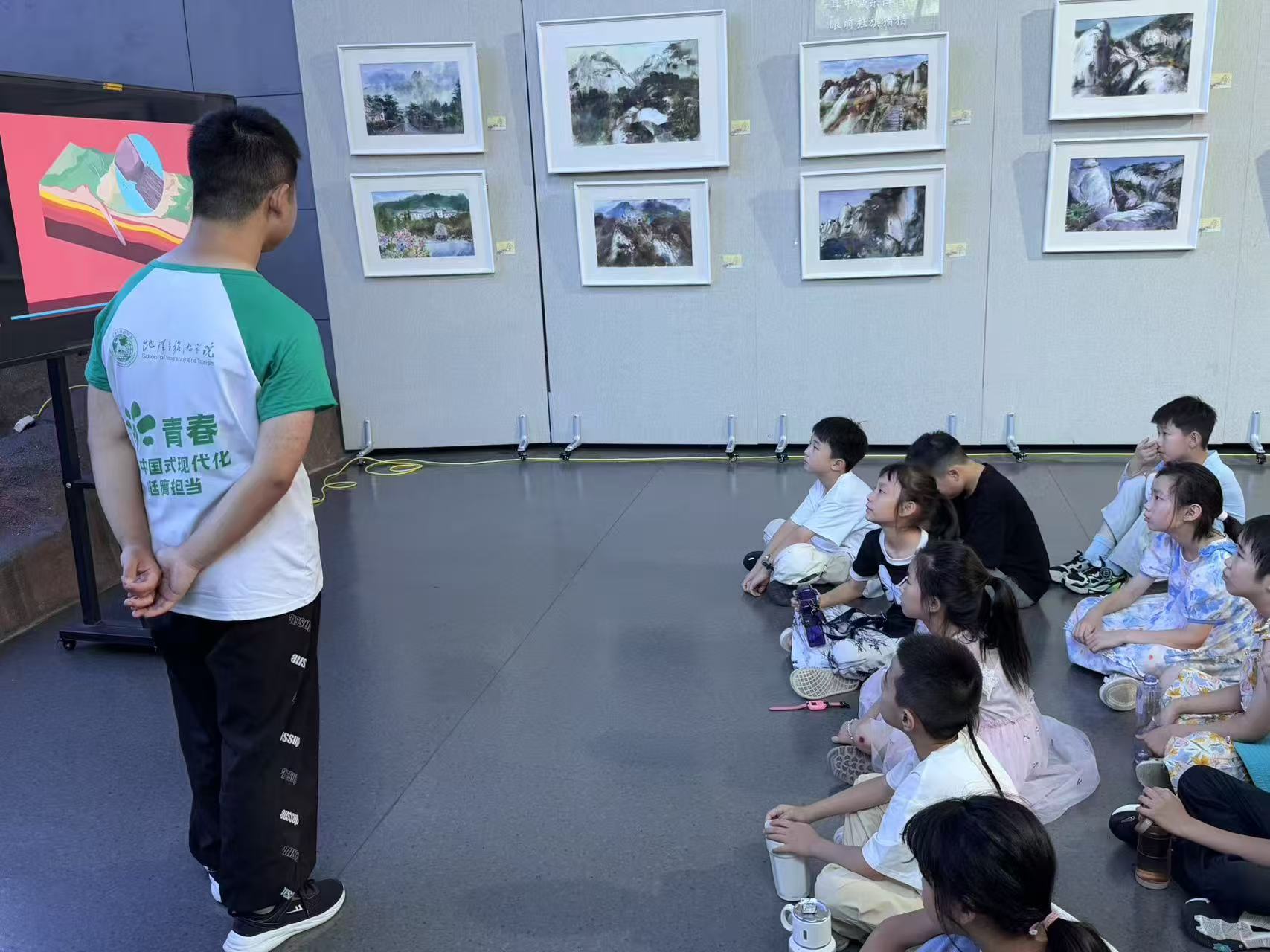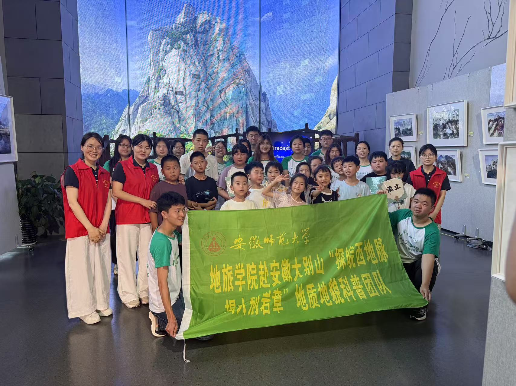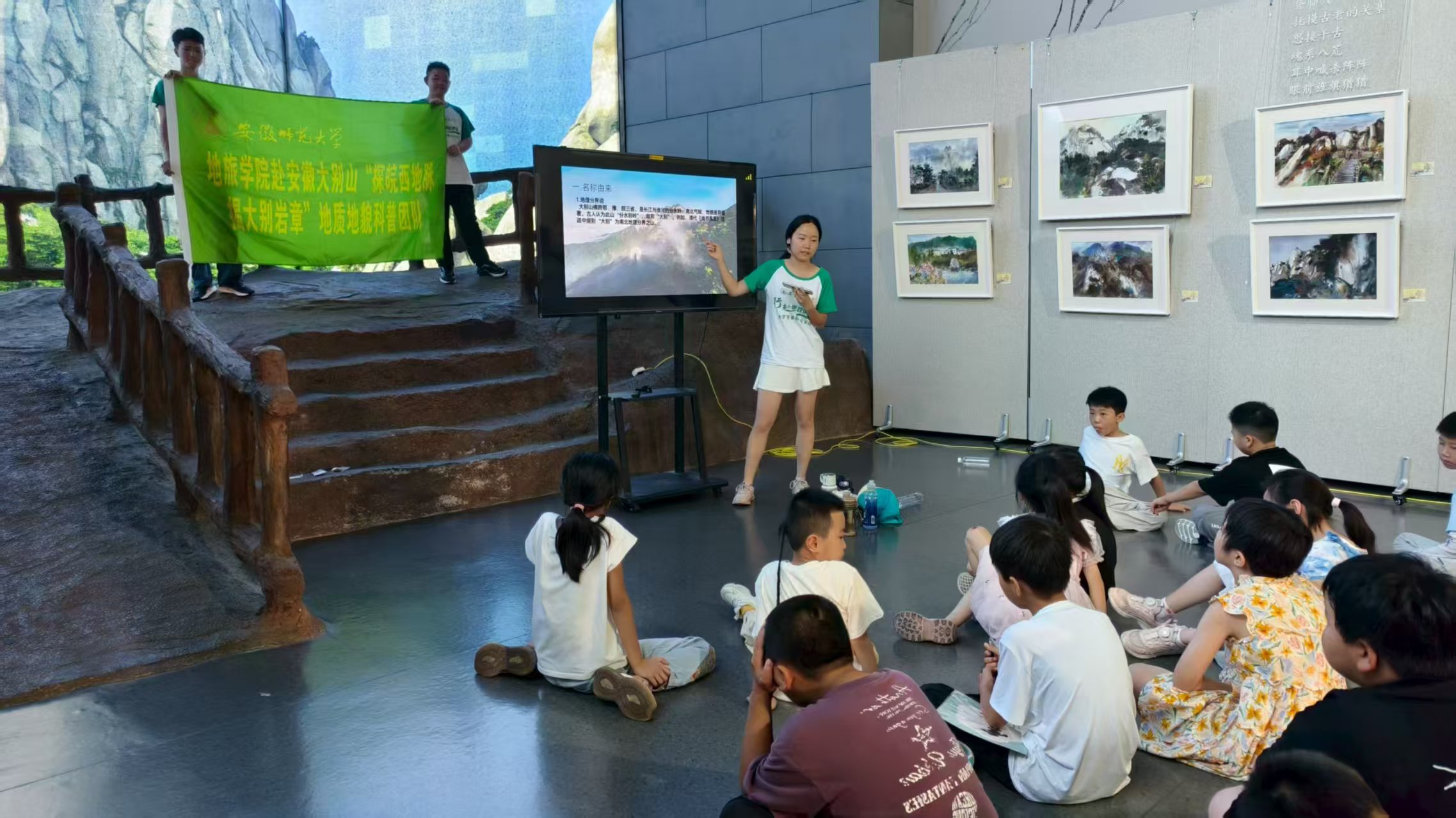 赴安徽大别山“探皖西山脉,揭大别岩章”地质地貌科普团队走进天柱山博物馆,为当地小学生带来了一场生动有趣的天柱山地质地貌科普课。此次活动也为团队的暑期社会实践画上了圆满的句号。