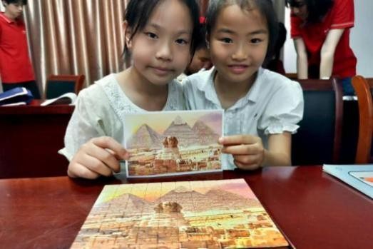 下午的活动将上午的“云端”知识落地为“指尖”实践。团队组织了世界著名景点拼图挑战赛。学生们按兴趣分组,每组领取包含不同景点(如长城、金字塔、泰姬陵等)的拼图套装。活动要求学生们在协作中,将散落的碎片还原成完整的世界地标。活动现场,学生们热情高涨,分工明确:有的负责寻找边缘碎片,有的专注拼合建筑主体,有的则根据图片指导位置。遇到难题时,组内成员积极讨论,互相帮助,充分体现了团队合作精神。随着一块块拼图被准确归位,学生们的脸上洋溢着成功的喜悦和自豪感。这一环节不仅巩固了上午所学的地理知识,更锻炼了学生的观察力、空间思维能力、专注力以及至关重要的团队协作能力。