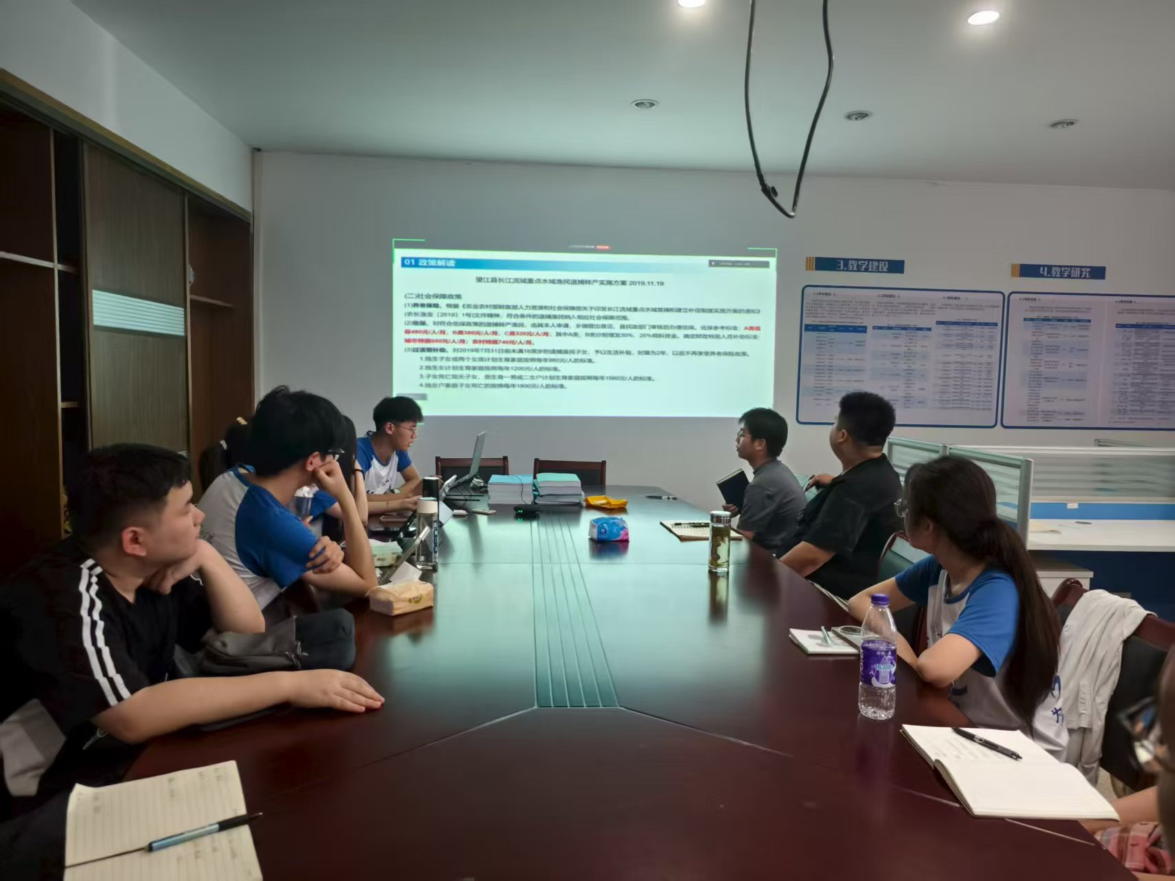 会上,王昕博、徐影、车秋婉、李祥宇四位同学围绕安徽11个区县退捕工作展开汇报。他们重点解析巢湖、歙县等地退捕转产政策,涵盖渔船拆解分级补偿、养老保险阶梯补贴、就业创业多维扶持等核心内容;通过展示自主创业成功与转养失败典型案例,会议重点强调技能培训的精准性与政策沟通的有效性;他们系统梳理重庆AI预警、湖北“天网工程”等跨省经验,提炼出“健全工作体系—强化产业带动—拓宽就业渠道—筑牢民生保障”的闭环工作模式,特别指出“离渔不离水”的亲水转型路径及渔文旅融合发展的创新方向。
