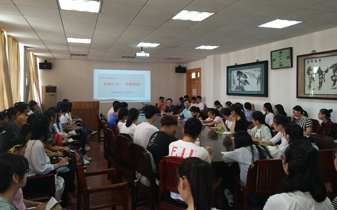 本网讯(国旅学院 张玉鑫)为强化2017级旅游管理新生专业思想教育,9月17日上午十点半,安徽省旅游学会副秘书长、安徽省旅游协会自驾游与露营分会常务副会长、安徽省旅游局“2016安徽旅游十佳微博”博主(杨子行游)、旅游营销实战专家、安徽旅游在线总编辑杨少武应邀在院行政楼三楼会议室举行2017级旅游管理新生专业思想教育专场报告,报告由旅游管理专业负责人杨效忠教授主持,专业老师王群教授和辅导员王美也参加了报告。