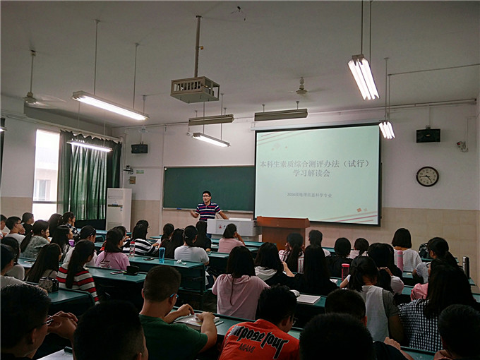 本网讯(国旅学院 周思雨)秋光灿烂幸福长,求知路途征帆扬。为贯彻教育方针,促进学生全面发展并以饱满的精神迎接新学期的到来。9月4号下午4点,2016级地理信息科学专业于教学楼2040501召开本科生素质综合测评办法(试行)及色情动漫
