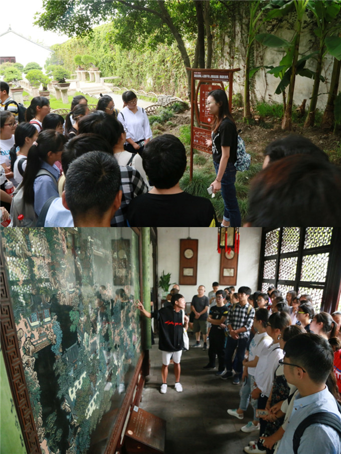 次日,实习组走进苏州私家园林的经典代表——拙政园。在园林中,曹卫东老师和黄秋实老师实地为大家讲解园林规划的特点及布局,使同学们理解了江南的独特风格。下午,同学们又来到了苏州博物馆和盘门风景区,景区内的瑞光塔、水陆城门、吴门桥三者有机结合,独具特色。