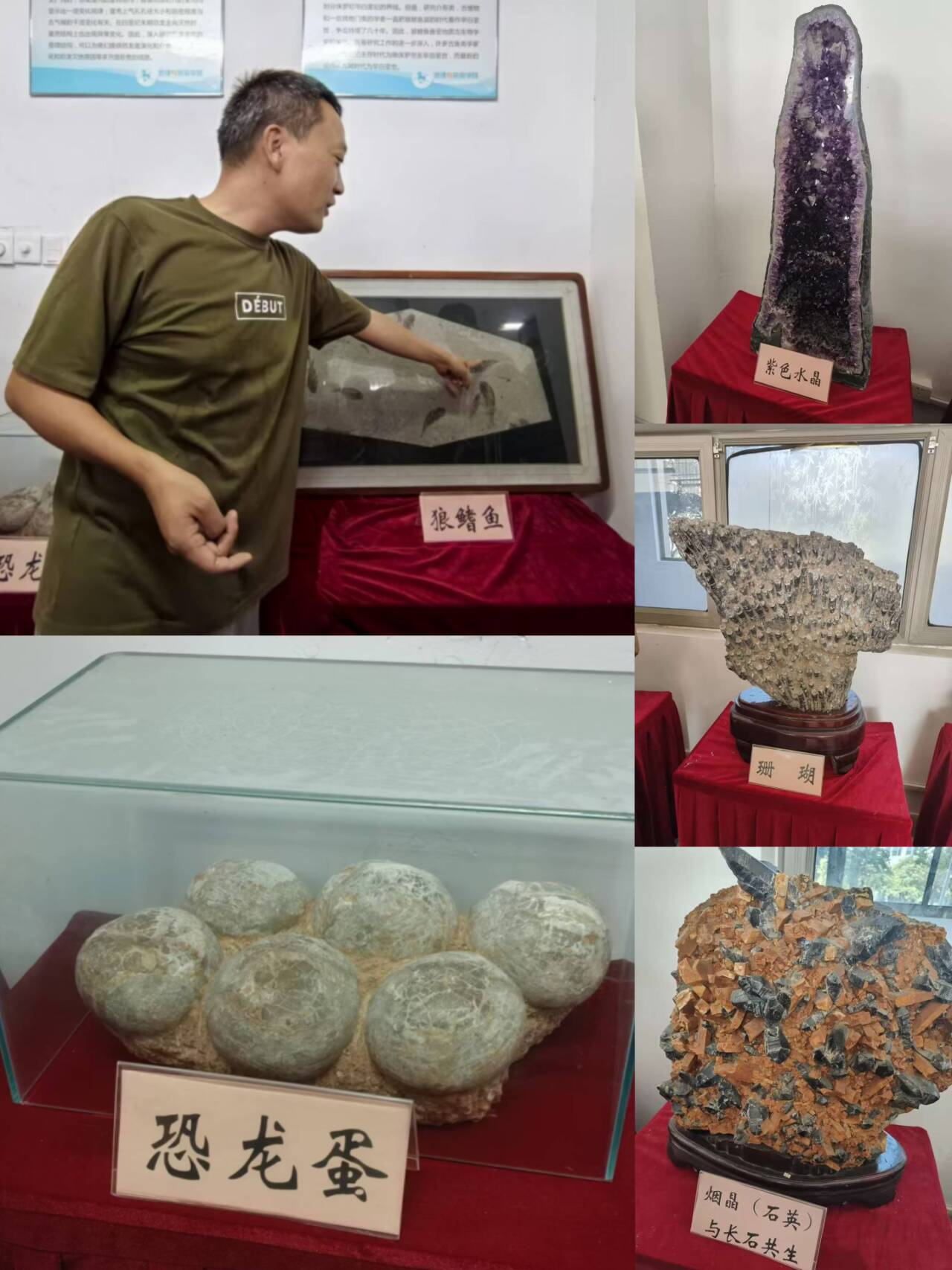 在古生物化石展区,狼鳍鱼化石成为全场焦点。杨老师指出:“狼鳍鱼生活在距今约1.2亿年的早白垩世,是我国北方热河生物群的重要代表,对研究鱼类进化及古环境变迁具有重要科学价值。”实验室还陈列了直角石、紫水晶洞等珍贵标本。直角石作为远古头足类动物的代表,见证了4.8亿年前的海洋世界;而晶莹剔透的紫水晶洞,则向同学们生动展示了矿物在稳定地质条件下历经百万年缓慢结晶的自然奇迹。