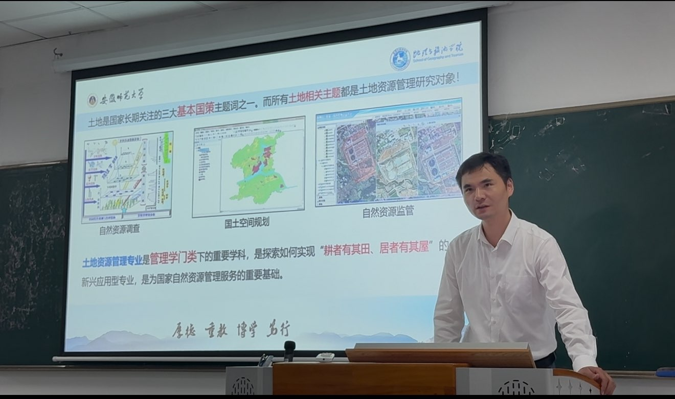 费罗成指出,作为安徽省唯一的国家级一流土地资源管理专业,本专业始终秉持文理兼容,知行合一的培养理念,师资力量雄厚,人才辈出。此外,他还就土地资源管理专业人才培养方案进行了解读,为同学们深入讲解了学科课程、学习规律、教学资源使用等内容,并指出本专业的特色在于技术性管理,要求既要懂技术又要会管理,希望同学们努力成长为一流的复合型人才。