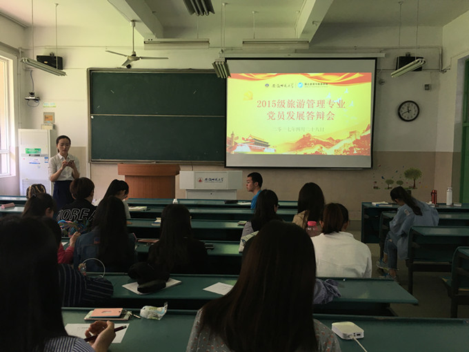 本网讯(国旅学院 曹琪 陈小艺)为充分发扬党内民主,确保学生党员发展质量,提高发展党员的透明度和认可度,4月28日,国旅学院2015级旅游管理专业党员发展答辩会于教学楼2040104开展。会议由辅导员吴燕主持召开,2015级旅游管理专业优秀入党积极分子、班委班务小组参加了此次会议。