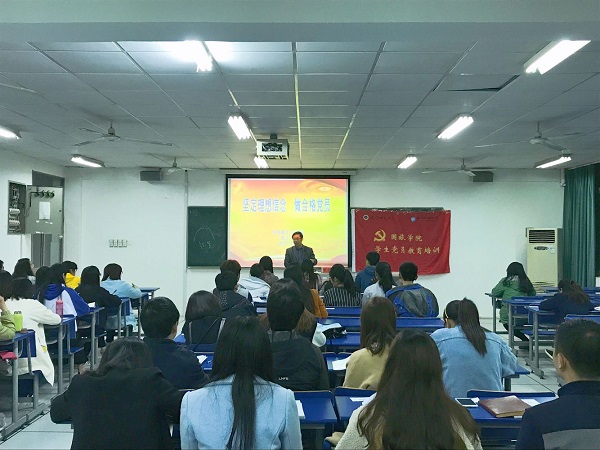 本网讯(国旅学院 刘冠琪、熊丹丹4月7日晚,马克思主义学院张正光教授应邀为学院授课,本次授课主题为“坚定理想信念,做合格党员”。本期党课教育培训班全体学员到场学习。