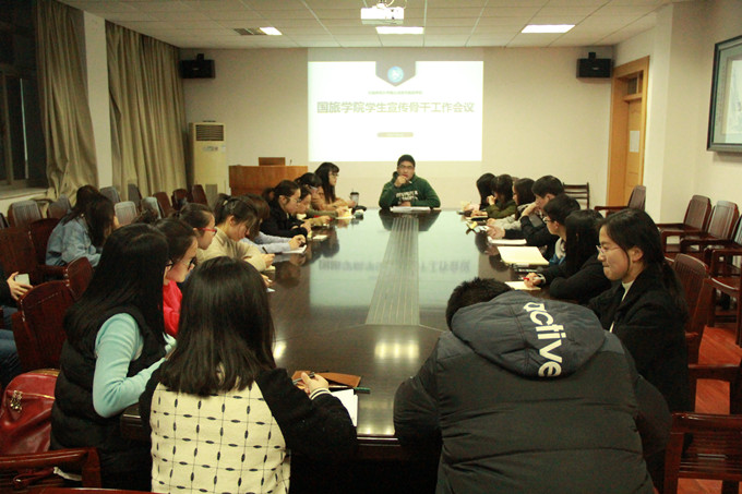 本网讯(国旅学院 徐童彤 )4月12日晚7时,国旅学院16级辅导员赵将在院行政楼召开国旅学院学生宣传骨干工作会议,各班宣传委员、各社团宣传部代表和院学生会新闻部理事参加会议。