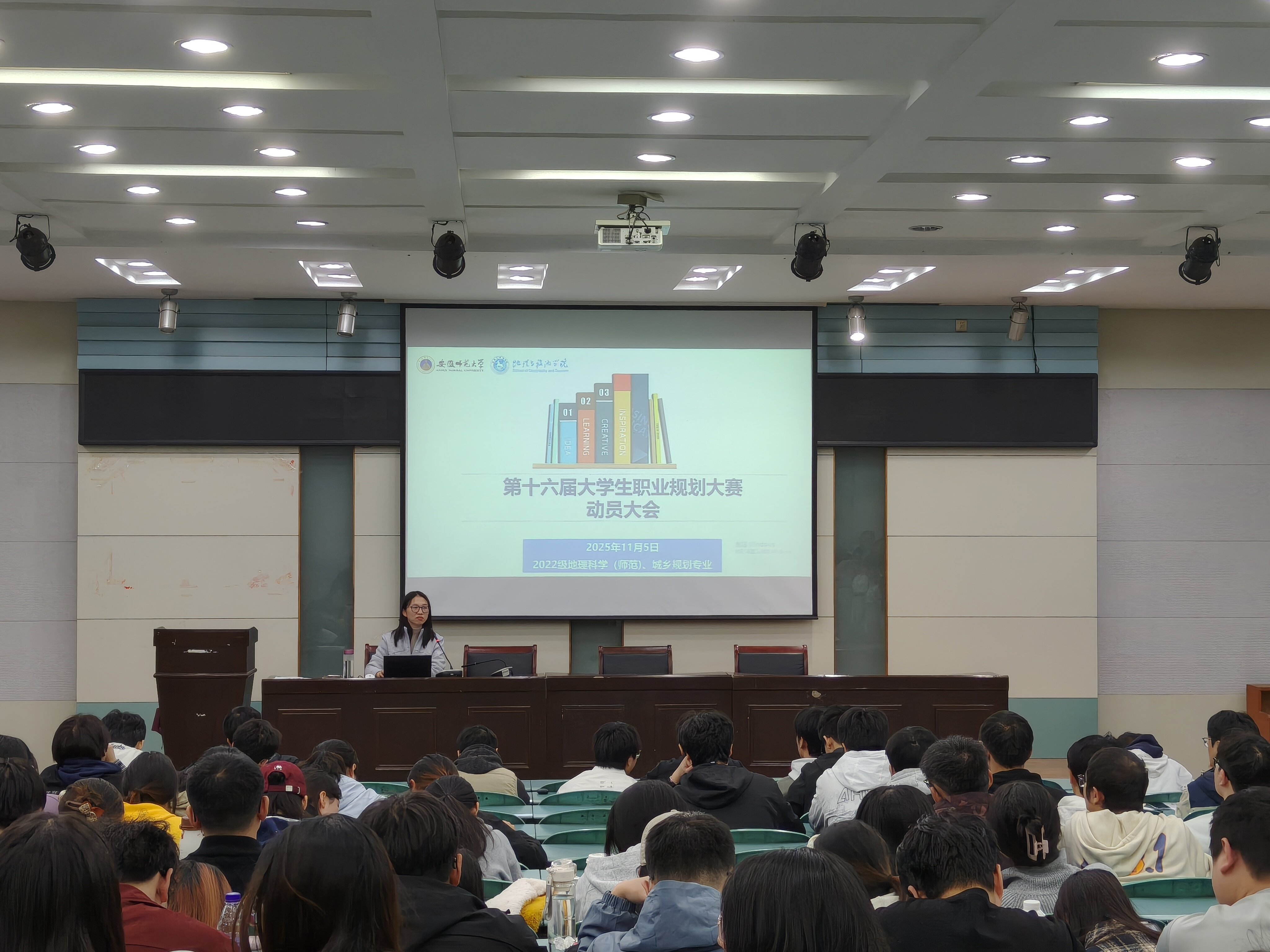 2025年11月,2022级地理科学(师范)与城乡规划专业于实验楼101报告厅召开升学就业指导及安全教育等系列主题班会。全体毕业生参加会议,会议由辅导员操晶晶主持。