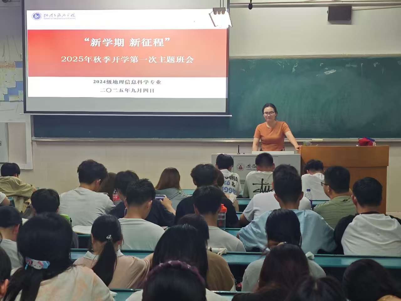 2024级地理信息科学专业于近期召开了“新学期 新征程”秋季开学第一次主题班会。班会由辅导员韦银艳主持,围绕纪律规范、安全教育和学风建设等核心内容展开。