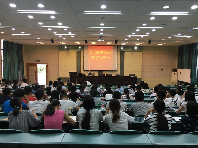 动员大会上,方凤满从实习目的、实习计划、实习意义等方面强调了皖南地区实习的重要性,要求学生遵守“严于律己,服从管理,安全第一”的实习原则,希望全体实习学生在实习过程中能做到眼勤、嘴勤、腿勤、脑勤、手勤。高超则强调学生要树立学习意识、安全意识、纪律意识、形象意识。随后专业任课教师陆林做了实习专场报告会,详细介绍了解黄山地区的地质地貌等自然地理特征,以及徽州古村落、人居环境、旅游发展等人文地理内容。