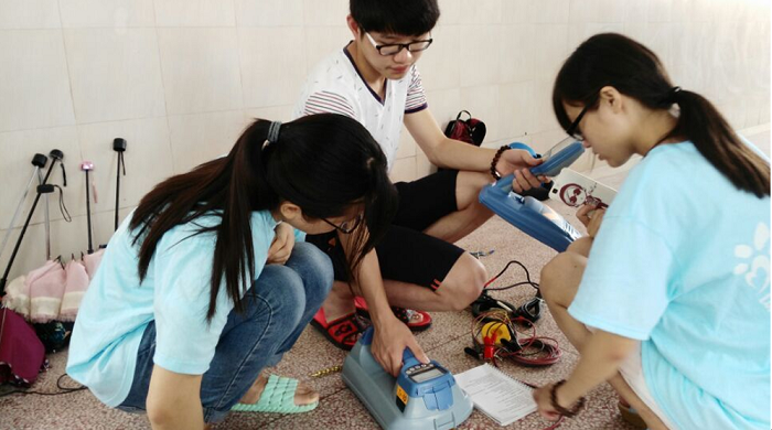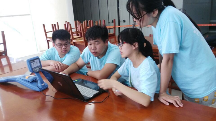 3号早上,全体队员按照计划到指导老师麻金继教授办公室开会,老师首先强调了安全的重要性,并总结了此次调研活动的目的:一是将理论与实践结合,把书本知识运用到实际工作中,提高专业知识技能;二是整合师大赭山校区地下综合管线数据资源并且做出数字化、可视化的师大校区地下三维管线系统。下午,怀揣着激动兴奋的心情,全体队员早早地就来到教学楼准备研究地下管线定位仪RD8100。看着如此轻巧的仪器,队员一开始并没有放在心上,以为二十分钟就可以进行实践了。然而,全新的仪器似乎并没有那么简单。虽然俗话说“没有金刚钻,别揽瓷器活”,但是队员们并没有灰心,决定不轻易求助老师,凭借着集体的智慧研究说明书、上网查找资料,终于功夫不负有心人,经过一个下午的时间,队员们成功将这台“高大上”的设备组装成功。