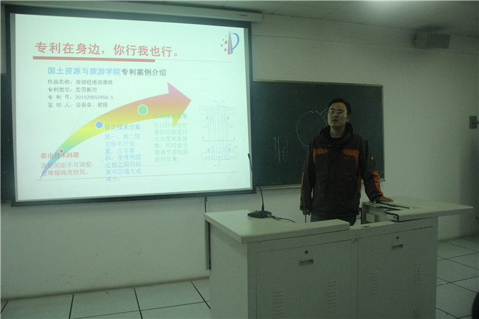 会议伊始,高超老师讲解了科研论文写作的基本素养、论文主体部分以及选题的方法等,并结合实例将论文写作中的要点及注意事项逐一列出。接着,沈炎老师为同学们带来了专利知识和相关政策解读并介绍了我校学生专利发明大赛举办以来所取得的成绩,以专业的角度讲解了专利基础知识、学生专利大赛、专利相关政策、专利申请程序等内容;同时,他还根据学院学生的专业特点以及生活中小发明等大学生感兴趣的话题为同学们“量身定制”了一场生动的演讲。随后,2012级土地管理专业舒心同学分享了自己参加本科生科研论文大赛的感触和心得体会,她结合自身经历讲述创作科研论文的步骤、事前准备。她认为:“良好的心态在比赛中十分重要,同时在创作的过程中,团队合作更让我受益匪浅。”最后,姚莉莉老师为同学们介绍了学校“三项大赛”的基本情况,包括作品征集时间、参赛要求、奖项设置等,鼓励同学们积极参加。