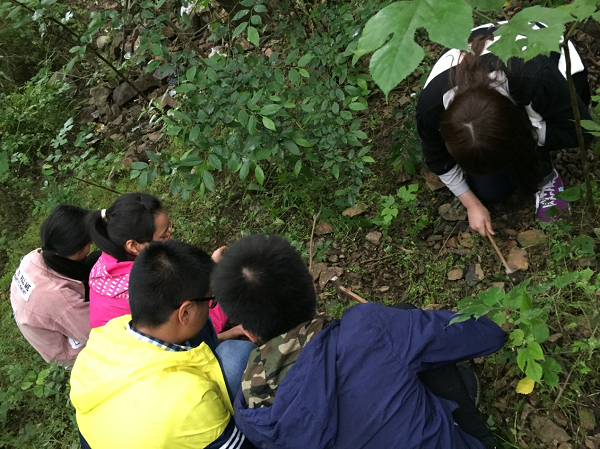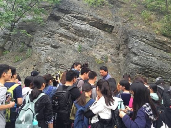 当杨立辉老师讲解测量产状时,同学们便积极拿出罗盘实测倾向和倾角,当程先富老师讲解岩石的构造和名称时,同学们便拿出纸笔,认真做好记录工作。实习过程中,15地科团小组内部分工明确,和睦融洽,在实习中收获了经验和知识,增强了班级凝聚力,增进了师生之间、同学之间的感情。