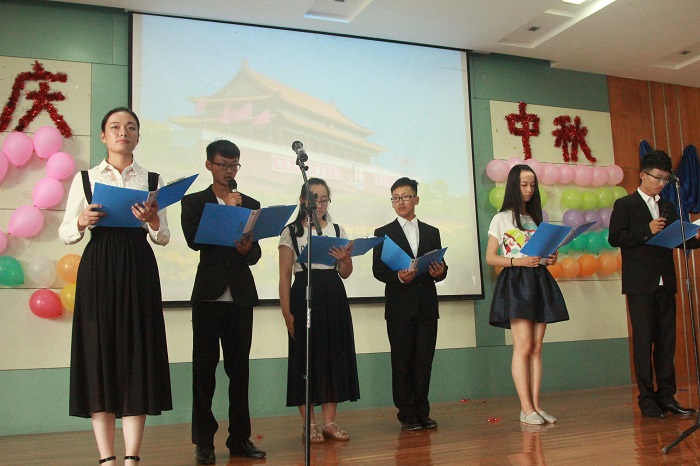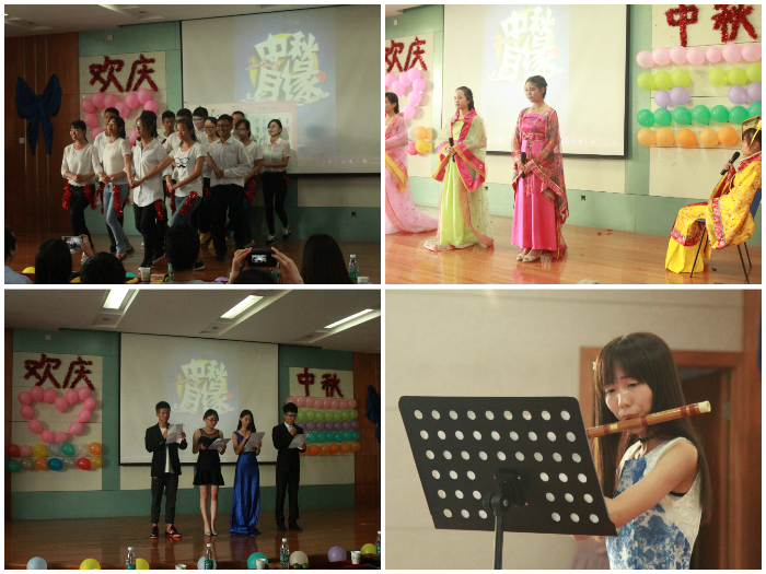 中秋佳节,花好月圆,万里晴空,千里相思,师大校园,丹桂飘香,旅管学子,共享盛宴!联欢会伊始,动感十足的T台秀就点燃了在场同学的热情;胡思璇等同学倾情献唱的歌曲串烧《教官去哪儿》,唱出了大一新生对师大的最初记忆;姚思奇同学为大家带来的英语单口相声《妈妈的经典语录》,则展现了15级旅管新生过人的表演天赋和流利的英语,在这个美好的节日中表达了对母爱深深的祝福;紧随其后,乐队演奏闪亮登场,同学们报以如雷的掌声。游戏环节中,需要齐心协力的“夹气球跑”和考验反应能力的“七水果”,使全体同学都乐在其中。此外,还有长笛独奏《姑苏行》,诗文朗诵《我的南方北方》,爆笑的舞蹈串烧《翻滚吧青春》,歌伴舞《画心》,自编自演小品《甄嬛传》等节目,无不赢得同学们的掌声和欢呼。最后,由观众和演员、主持合唱一曲《相亲相爱》,联欢会在和谐温馨的美好氛围中画上了圆满的句号。