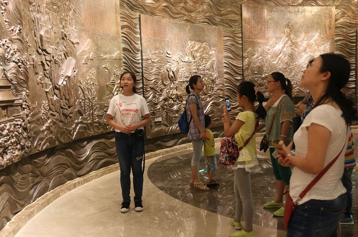 芜湖市博物馆作为芜湖的地标性建筑,展览着芜湖市悠悠岁月中的辉煌和沧桑。钟灵毓秀,青史绵长,集萃撷英,后土流芳,江城芜湖用最美丽的身姿向人们展现着她沉沉千年的魅力;依山傍水,山明水秀,浩浩长江,淼淼弋江,这颗长江上的明珠用历史的留痕勾勒一幅绝妙的风景。早上九点,市博物馆门口的游客已排成长龙,队员们早已经就绪,准备迎接第一批游客。“雷锋导游团”的8名志讲解员自主分工,负责博物馆内各个展厅的讲解,他们用专业的语言、谦和的微笑将游客们眼前的展品描绘得活灵活现,引得大批游客汇聚而来,驻足观看,仔细聆听。在典雅庄重的博物馆内,队员们忙碌的身影构成了一道亮丽的风景线。