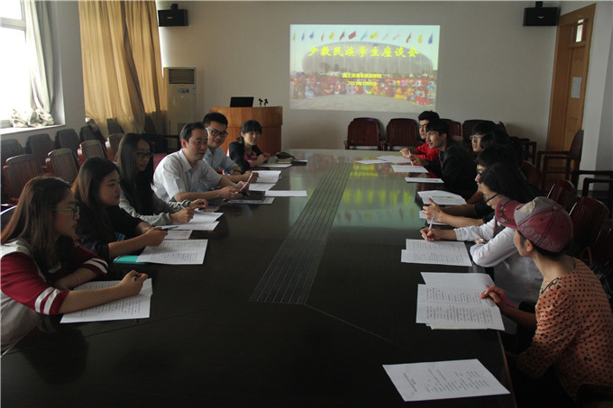 本网讯(国旅学院 张鑫、陈健)近日,国旅学院根据学校要求,在院三楼会议室召开少数民族学生座谈会。院党委副书记乔静、团委副书记陈健,以及全院少数民族同学共同参加了此次座谈会。