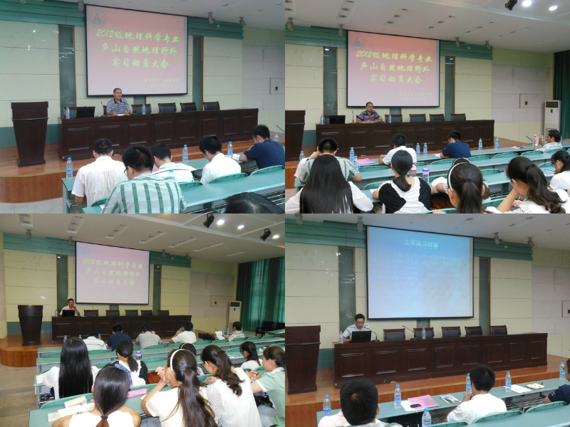 9月10日下午,2012级地理科学专业庐山自然野外实习动员大会在学院实验楼101教室举行,院党委副书记罗振、副院长卢松、朱永恒、孙叶根、张平究、余健、胡春生、徐光来、苗雨青、张玥等老师出席本次大会。
