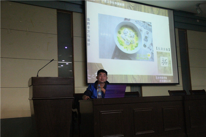 讲座在王美辅导员的简单介绍后开始。首先杨哲学长向同学们做了自我介绍,作为原美术学院学生会主席的他,大学四年各科平均成绩为92.23,最高分为95,一直名列全年级第一,曾创立了美院第一份院刊May,在学生会工作方面,他组织策划了美院第六届十佳歌手大赛。话毕,掌声雷动,同学们都陶醉在学长的演讲中,在惊羡学长的卓越成绩同时,也励志向他学习。