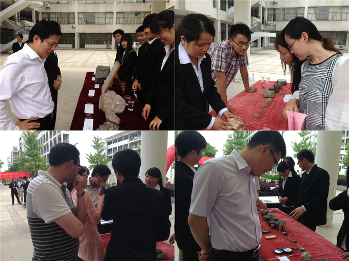 此次活动,除了吸引了数百师大学子的参与之外,也吸引了校、院各领导的到来。校学工处处长台启权老师,副处长陈莉老师,以及杨一飞、项家春、左方敏等学生处领导老师前来欣赏化石并向讲解的同学们仔细询问有关地质的问题,兴趣甚浓;院党委副书记罗振老师、团委书记张鑫老师在欣赏化石和展板的同时,驻足欣赏视频,并称赞这个视频的制作显示了地科学子青春靓丽、激情无限,同时称赞此次化石展举办地别出心裁,令人耳目一新。