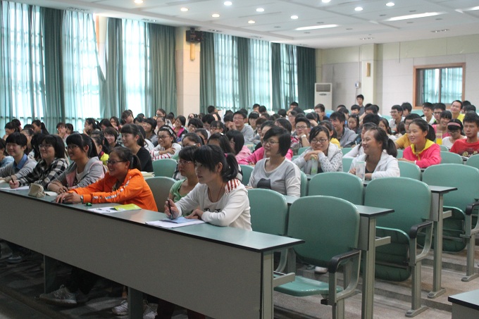 在长达两个半小时的讲座中,路老师用诙谐幽默的语言、深入浅出的讲解,为新同学答疑解惑,启迪、引领新一届国旅学子奋发向上。路老师谈到了如何正确看待大学教育,谈到了人际交往的技巧,谈到了学生宿舍的建设,谈到了亲情、友情和爱情。会场内时而欢笑,时而安静,时而掌声迭起。路老师在谈到亲情的时候结合自己的经历,流下了动情的泪水,也不禁让同学们为之感动。在最后的自由问答环节,新同学们积极、踊跃的提问,路老师则耐心、巧妙的解答,师生和谐互动,严肃而活泼。